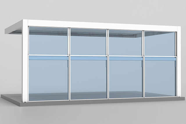 Habitat-Win é um painel de vidro regulável em altura que lhe permite desfrutar de espaços exteriores com os seus amigos e familiares desde a Primavera até ao final do Outono.